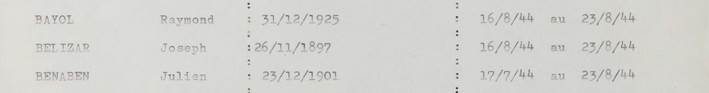 José BELIZAR (26/11/1897, Mula). No hay ninguna información que nos indique cómo o cuándo llegó José a Francia y más concretamente a Tarn, departamento en el que lo podemos ubicar en 1944. Entre los casos trabajados hasta ahora, en este departamento, encontramos a murcianos que habían emigrado a Francia antes de los años 30. Llegaron atraídos por la demanda de mano de obra, especialmente en las cuencas mineras. Podría ser el caso de José, al que podemos situar en el entorno de Carmaux. Aunque no se puede descartar que formara parte de alguno de los Grupos de Trabajadores Extranjeros establecidos en la zona, compuestos por republicanos españoles procedentes del exilio de 1939.