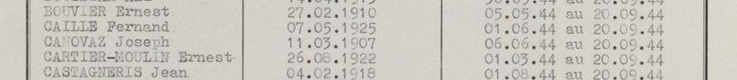 José CÁNOVAS (10/03/1907, Murcia). Los datos conocidos hasta ahora no nos permiten saber si formaba parte de la multitud de refugiados llegados a Francia en 1939, al finalizar la Guerra Civil en España o, por el contrario, era uno de los residentes en este país procedente de la emigración económica de principios del siglo XX. La única información conocida procede de la base de datos del Servicio Histórico de Defensa francés y de los Archives collectives des Forces françaises de l’intérieur. Fuente por la que sabemos que José se encontraba en el departamento de Savoia en 1944, año en el que entró a formar parte de la Resistencia.