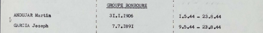 José GARCÍA (07/07/1891, Moratalla). Los datos conocidos hasta ahora no nos permiten saber si formaba parte de la multitud de refugiados llegados a Francia en 1939, al finalizar la Guerra Civil en España o, por el contrario, era uno de los residentes en este país procedente de la emigración económica de principios del siglo XX. En 1944 se encontraba en el departamento de Tarn donde se incorporó a la Resistencia. Es bastante probable que llegara hasta esta zona integrado en un Grupo de Trabajadores Extranjeros.