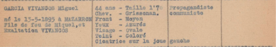 Finalmente formó parte de un convoy compuesto por diez refugiados españoles, todos internados en Saint Cyprien, enviados por el Prefecto de Pirineos Orientales a Vernet el 3 de enero de 1940. El grupo debía partir de la estación de Elne a las 7:39 de la mañana. Cinco de ellos estaban acusados de realizar propaganda comunista y otros cinco de pertenecer al POUM. En el caso de Miguel, considerado comunista, se especifica la intervención para impedir la incorporación de otros internos a las Compañías de Trabajadores Extranjeros.