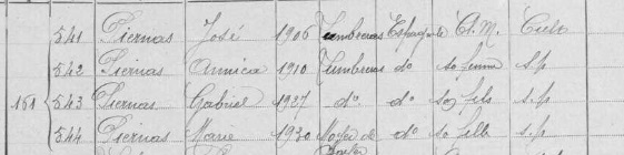 José PIERNAS (09/01/1906, Puerto Lumbreras[1]). José emigró a Francia en las primeras décadas del siglo XX. En 1931 se había establecido en Mauguio (Hérault), en la Rue de la Motte, número 151. Era agricultor, estaba casado y era padre de dos hijos.