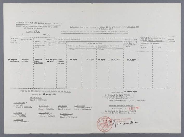 José Antonio RIVERA CASCALES (1917, Molina del Segura). Los datos conocidos de José Antonio nos remiten a su captura en España en una de las incursiones de Guerrilleros Españoles. En ese momento declaró ser albañil y tener 27 años. Su brigada, la 570 estaba formada por antiguos combatientes de la 10ª Brigada de Guerrilleros Españoles de Bajos Pirineos (hoy Pirineos Atlánticos). Razón que nos induce a pensar que José Antonio formó parte de ella durante la ocupación alemana, aunque no hay ningún documento que lo acredite. La 10ª Brigada estaba implantada en Pé-de-Hourat, muy cerca de la frontera española. Se nutrió, en gran medida, de trabajadores de los 526 y 518 GTE (Grupos de Trabajadores Extranjeros). Vía por la que, posiblemente, llegó hasta este departamento y a la Brigada.