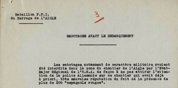 Otra de las operaciones que se les encargó a los españoles, durante los meses de agosto y septiembre, fue la vigilancia y control territorial de los tres valles de Maronne, Bertrande y Cère, destruyendo los puentes, en caso de necesidad, para impedir el paso de los convoyes enemigos y facilitar un ataque simultáneo. Era fundamental evitar que los alemanes, en su repliegue, destruyeran las presas. El papel desempeñado por los españoles, muy numerosos en la construcción de embalses esta zona, incluso bajo supervisión alemana, fue fundamental al disponer de unas organizaciones, conectadas entre sí, que facilitaron la coordinación y supervisión de la Resistencia[5].